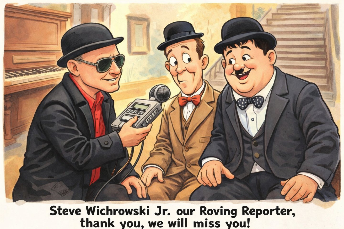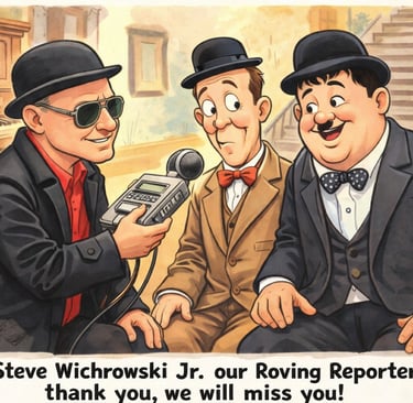 Sad news has reached us regarding the passing of one of our own, our roving reporter Steve Wichrowski Jr. Our heartfelt condolences go to all his friends and family. Steve's love for Laurel and Hardy and the Sons of the Desert was evident for all to see (and hear), he will be sorely missed.